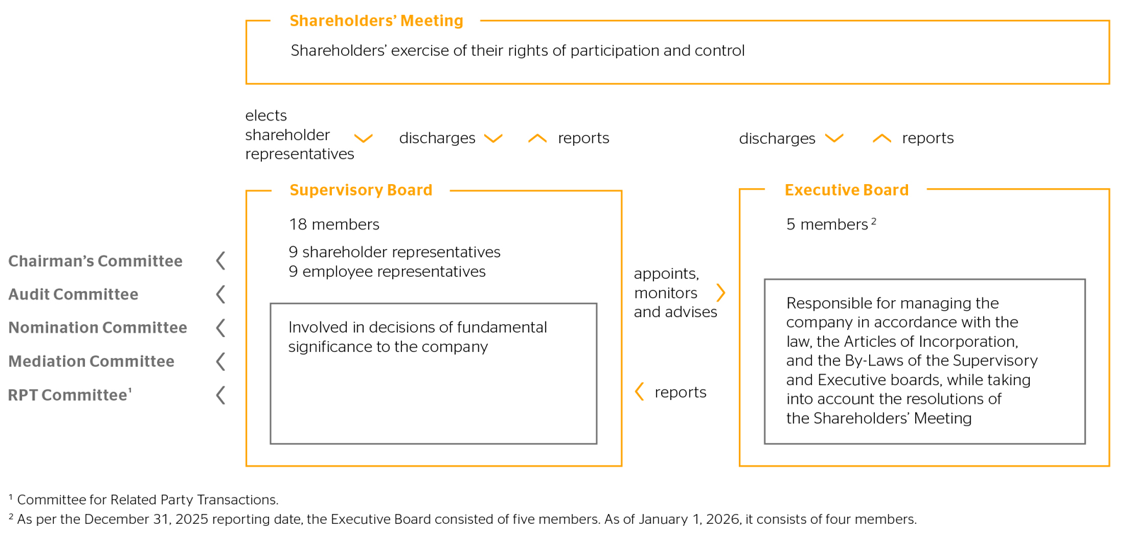 The Supervisory Board currently has five committees with decision-making powers: the Chairman’s Committee, the Audit Committee, the Nomination Committee, the committee formed in accordance with Section 27 (3) of the German Co-determination Act (Mitbestimmungsgesetz – MitbestG (the Mediation Committee) and the committee for the approval of company transactions with related persons (Committee for Related Party Transactions, RPT Committee) (Section 107 (3) Sentence 4; Section 111b (1) AktG).