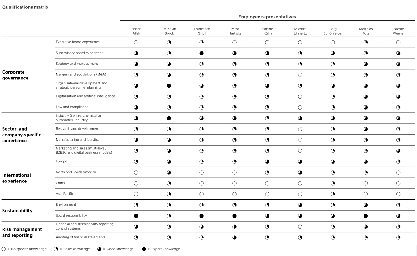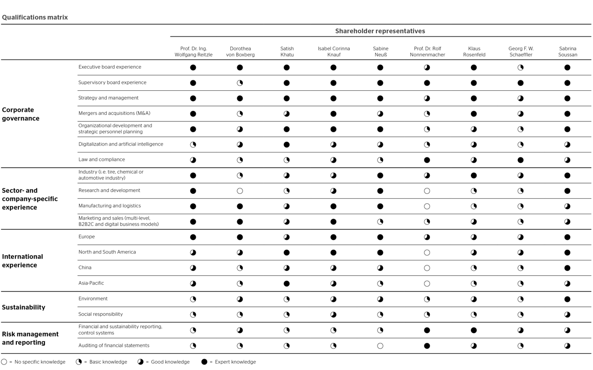 The Supervisory Board members should collectively cover all skills, expertise and experience deemed to be significant in view of Continental’s business activities. These include in particular: